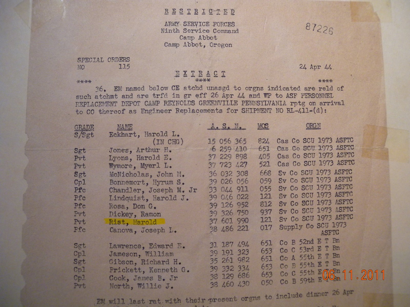 Harold Rist - 36th Engineer