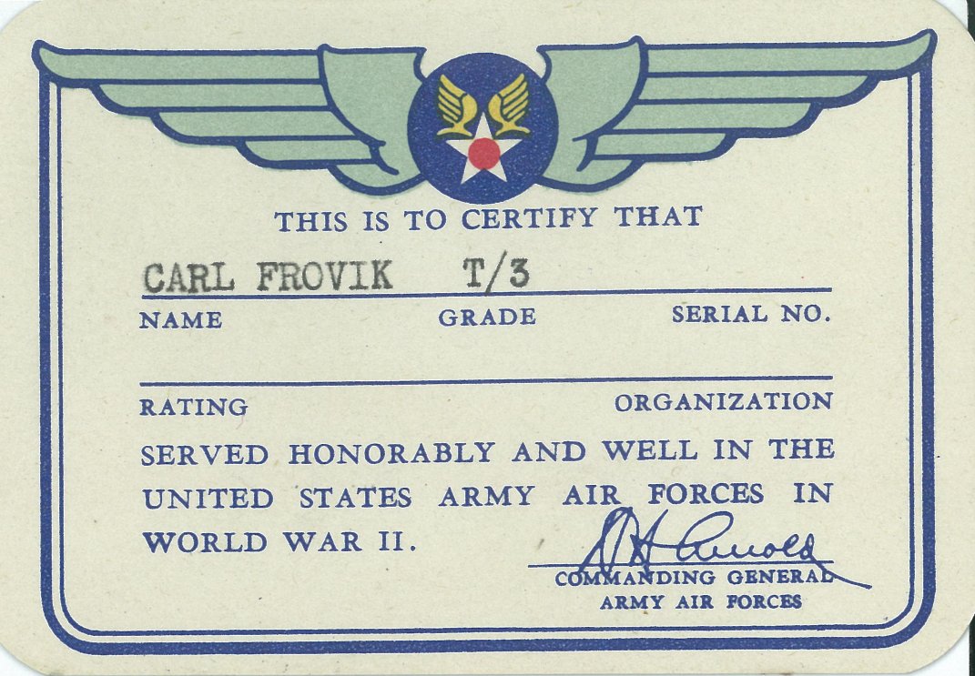 Carl Frovik – 1884th Engineer Aviation Bn