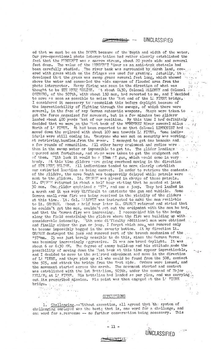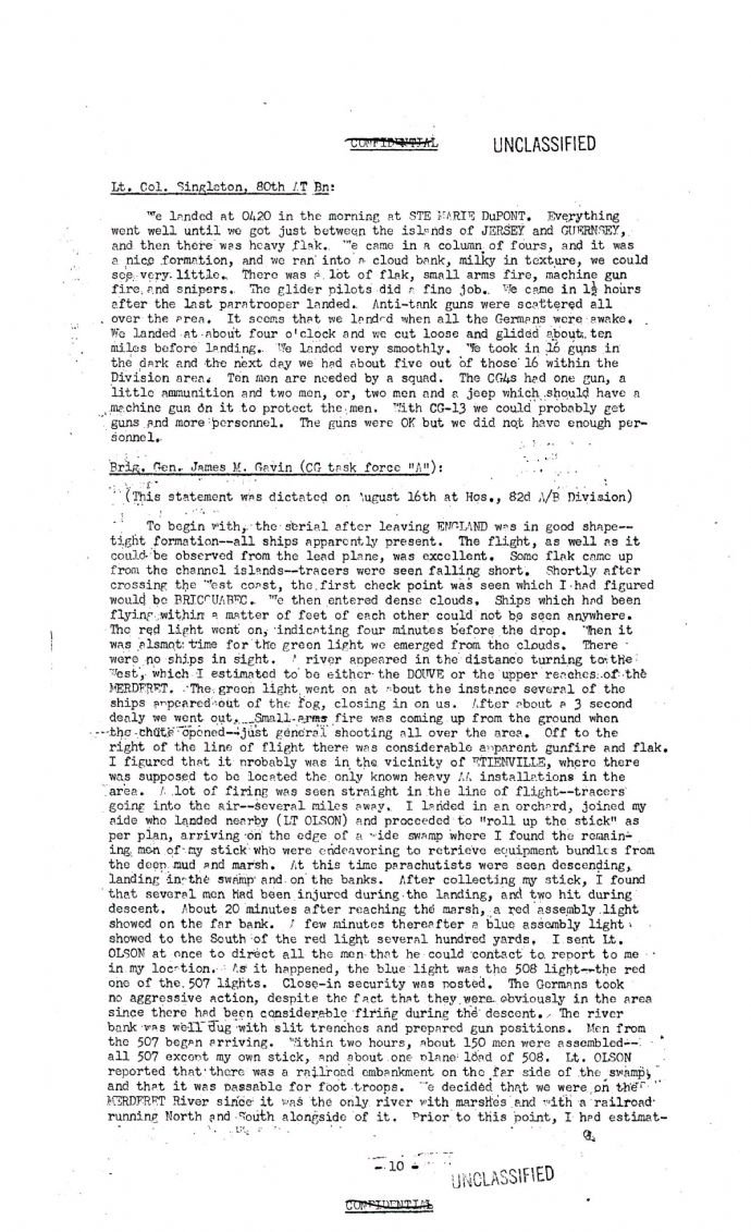 there is a document titled: Debriefing Conference Operation Neptune. The conference was held thursday, 13 August 1944, in Leicester and all commanders of battalion & larger sized units of the 82nd Airborne gave short accounts of the landings and what was happening. The entire document is here: