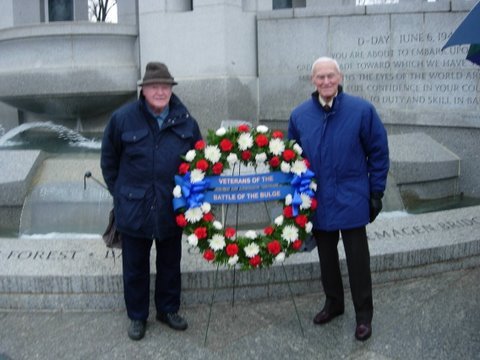 The photos are scenes taken at the Battle of the Bulge Historical Foundation event, Dec 16, 2008, on the 64th Anniversary of the beginning of the Battle. Here I can be seen at our VBOB venu at the WW-II Memorial in Wash. DC, where we placed a wreath.......also at the Tombs of the Unknowns,placing a wreath;.... and at our VBOB Monument in Arlington National Cemetery; placing a wreath....This monument is the gift of the Government of Luxembourg to the VBOB.....