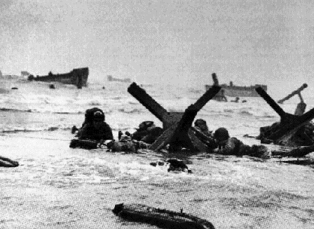 This is another famous D-day shot. Not a real pleasant thought having to wade through water toward people who are shooting at you. Makes me think of what a terrible time the 2d Marine Division had at Tarawa.