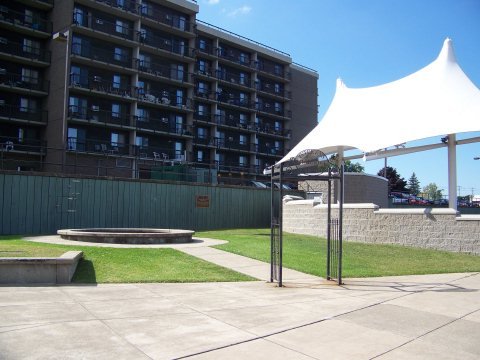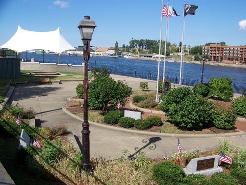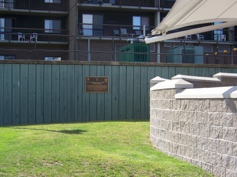 The attached pics show where the Curtis's plaque is located. It originally was a very prominent location, but now, as you can see it is sort of hidden by the new pavilion the city has erected. I am going to try to get it moved.