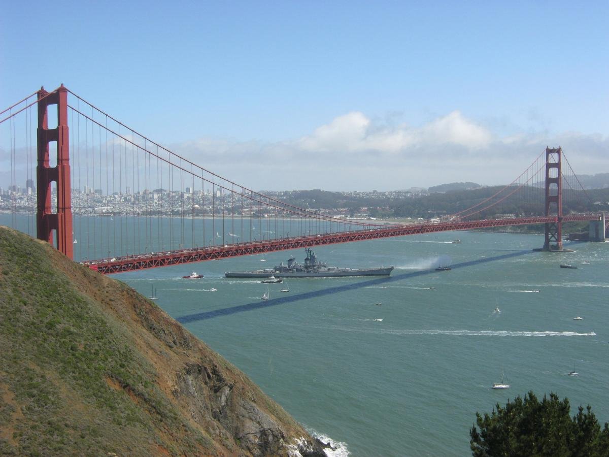 With our special thanks to Molly Rossman of Oakland, California, and to Ron Barrett of Piedmont, California, All Hands will be receiving two sets of spectacular photos of USS Iowa in transit under the Golden Gate.