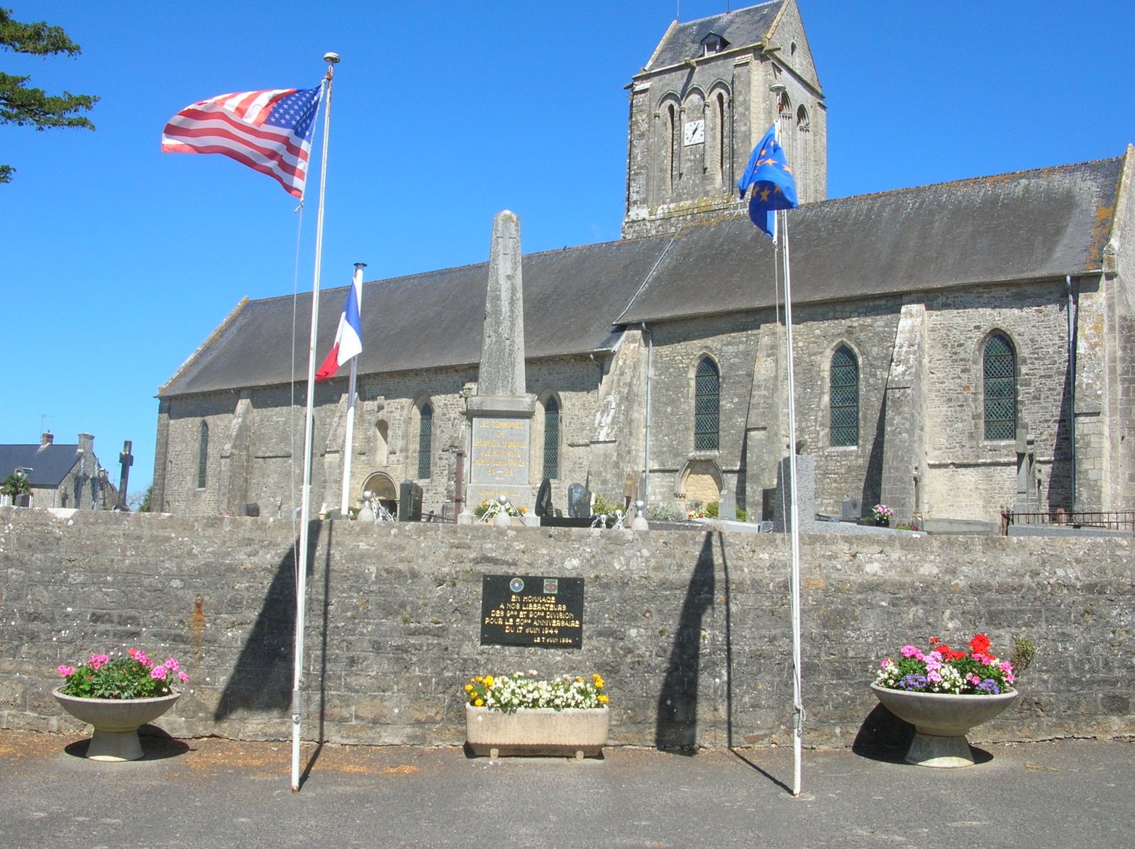 The monument of 6th Engineer Special Brigade around 1950 in Saint laurent .