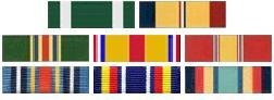 Well, it has been a long trip since that first picture to writing this to you in Iraq. I'd be to nice say that were the case, but alas, it's not so. Several of them are the kind of ribbons that give the viewer an idea how long you've been in and what you've done. For example, I have a National Defense medal with a star. Everyone who has come in since September 11th rates one. As I have two, that indicates that I've been in at least since late 1995 - the stopping point for the last time the were awarding it for Desert Storm (kind of late for DS, don't you think?) I also have a Select Marine Corps Reserve medal which indicates I was in the reserves for at least 4 years. The two I'm most proud of are the Combat Action Ribbon and the Navy Commendation Medal with Combat Distinguishing Device.
