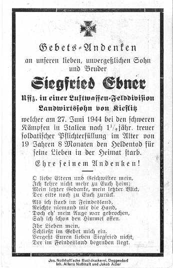 Sgt. Sigfried Ebner - Luftwaffe Field Division, killed 27 June 1944.in Italy.