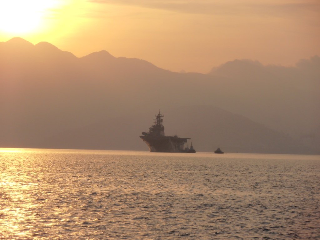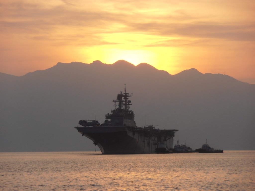 These were taken as the USS Bonhomme Richard (LHD-6) was pulling into port in Subic Bay at sundown. I was on the dock as we were just finishing up our exercise and was in the right place, right time.
