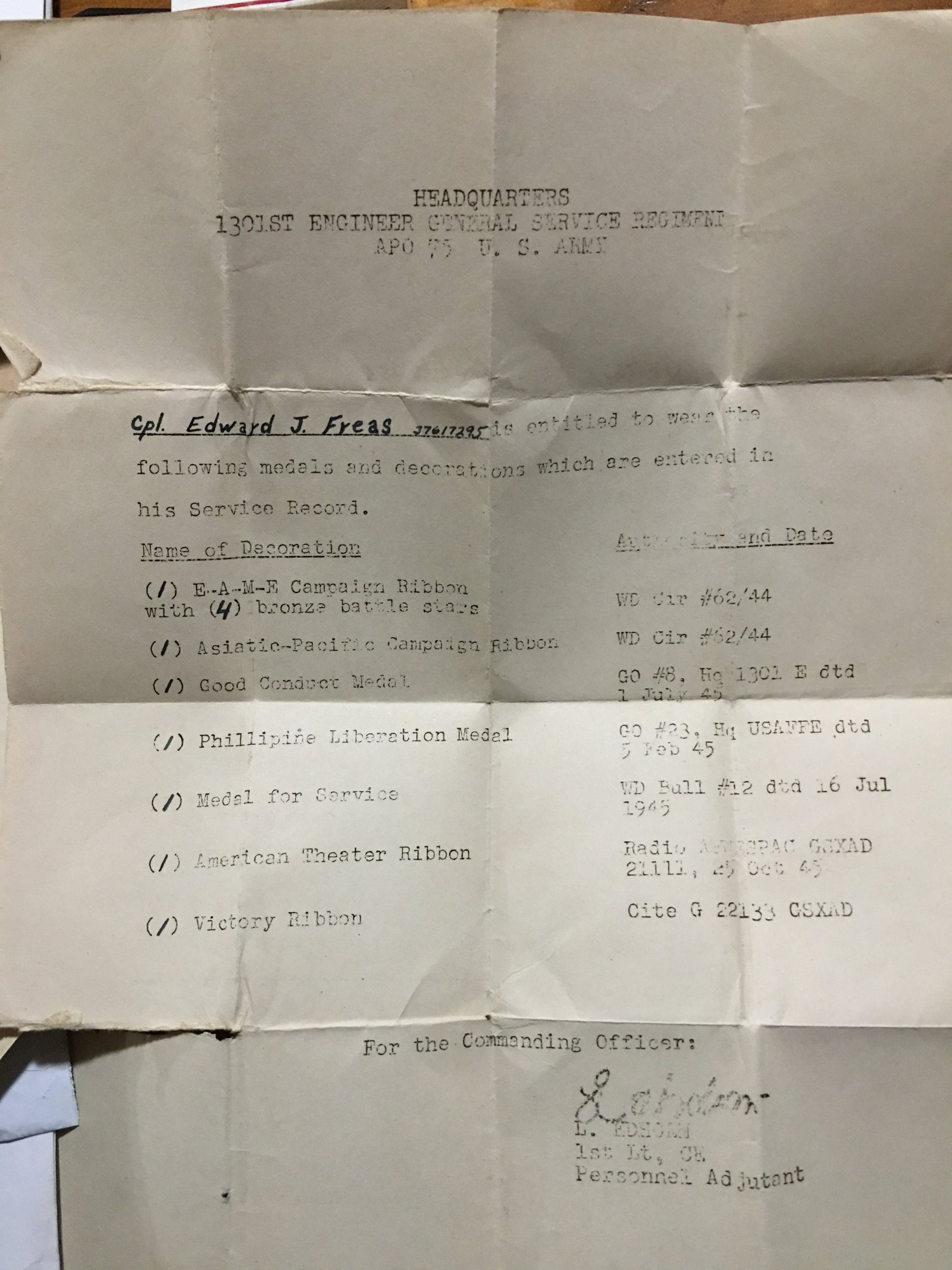Found these on my phone from awhile back they tell a pretty good story .i wonder why the jeep had 1301e and one of his decoration says e when he was in b?any ideas