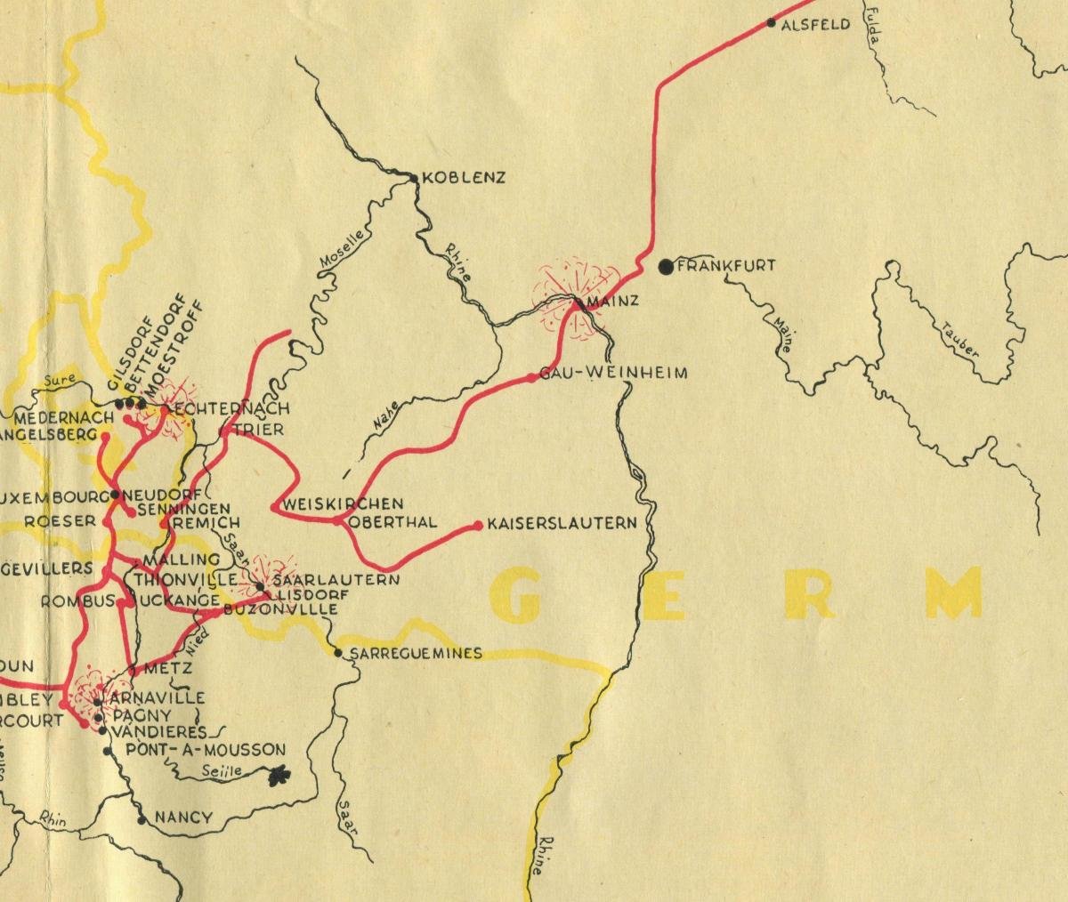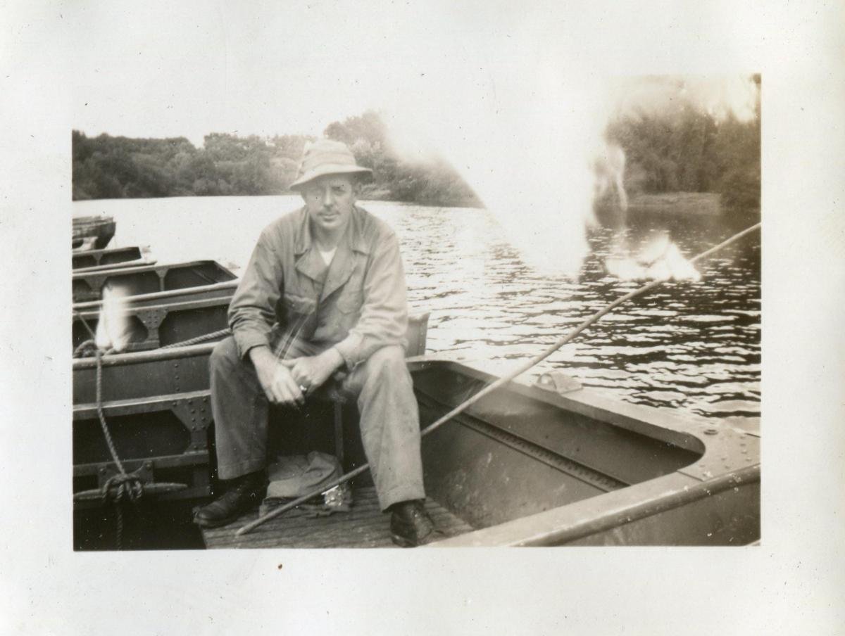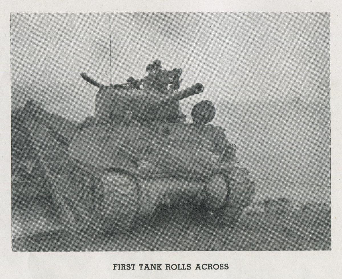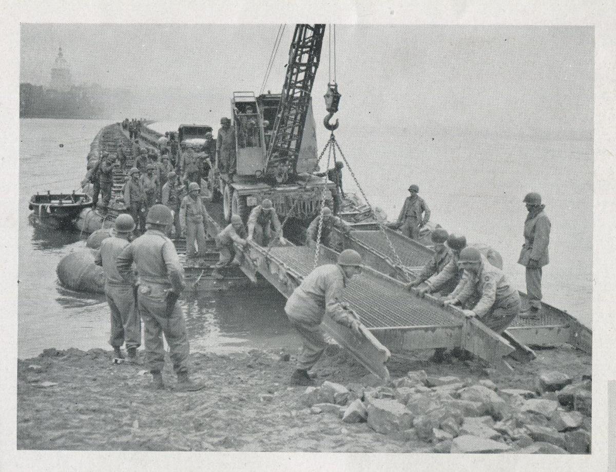 Combat Engineers commonly use floating bridge sections to ferry vehicles and supplies across rivers. In the early Fall of 1944, the 160 Engineer Combat Battalion was on the west bank of the Moselle River in the vicinity of Metz, France, making crossings and attempting to build bridges across it. The accurate artillery fire from the forts above Metz made bridge crossings nearly impossible. The Germans would destroy partially built bridges and wreck equipment still on the bank.The Engineers had ferried an infantry platoon across the Moselle before daylight that morning and they were "holding" the bridge head. These men were running short of everything, including ammunition.