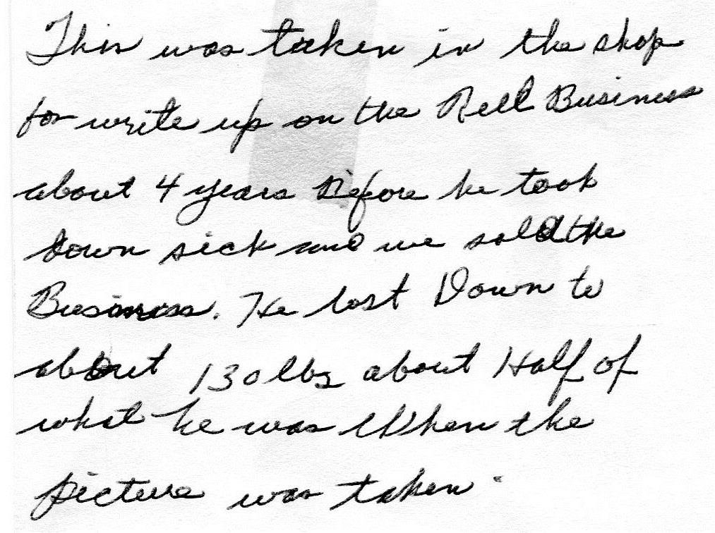 O.G. retired from the city of Indianapolis and started a fishing reel repair business on his property, more of a labor of love and a means of socializing than a way to produce income. He ran that business until he passed away some years ago. O.G. was awarded the Purple Heart and the Bronze Star during his service to his country. He was a good friend of Dad's and Dad has not forgotten O.G., he still tells me about his old friend.