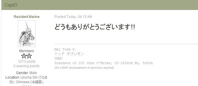 I am probably confusing some of the newbies - I'm "CaptO" by user name, a major general by rank on the forum, and sign off as "Major Todd O."