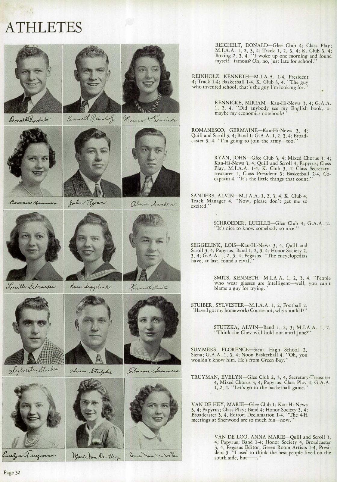 Also, thank you for posting the his yearbook page from Kaukauna. That's the first time I've ever seen that.