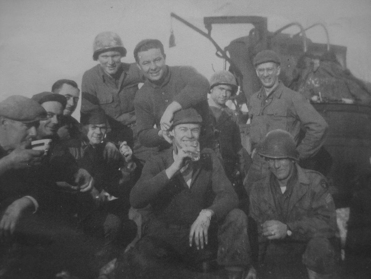 To complicate things my grandfather also was in the 266th combat engineers 66th Infantry Division. I don't know if this was for a future deployment from France to Japan but suspect so. Here is a picture of him with his buddies. The picture us labelled "at the famous Calvados Still" or something similar. He is the Sgt kneeling lower right.