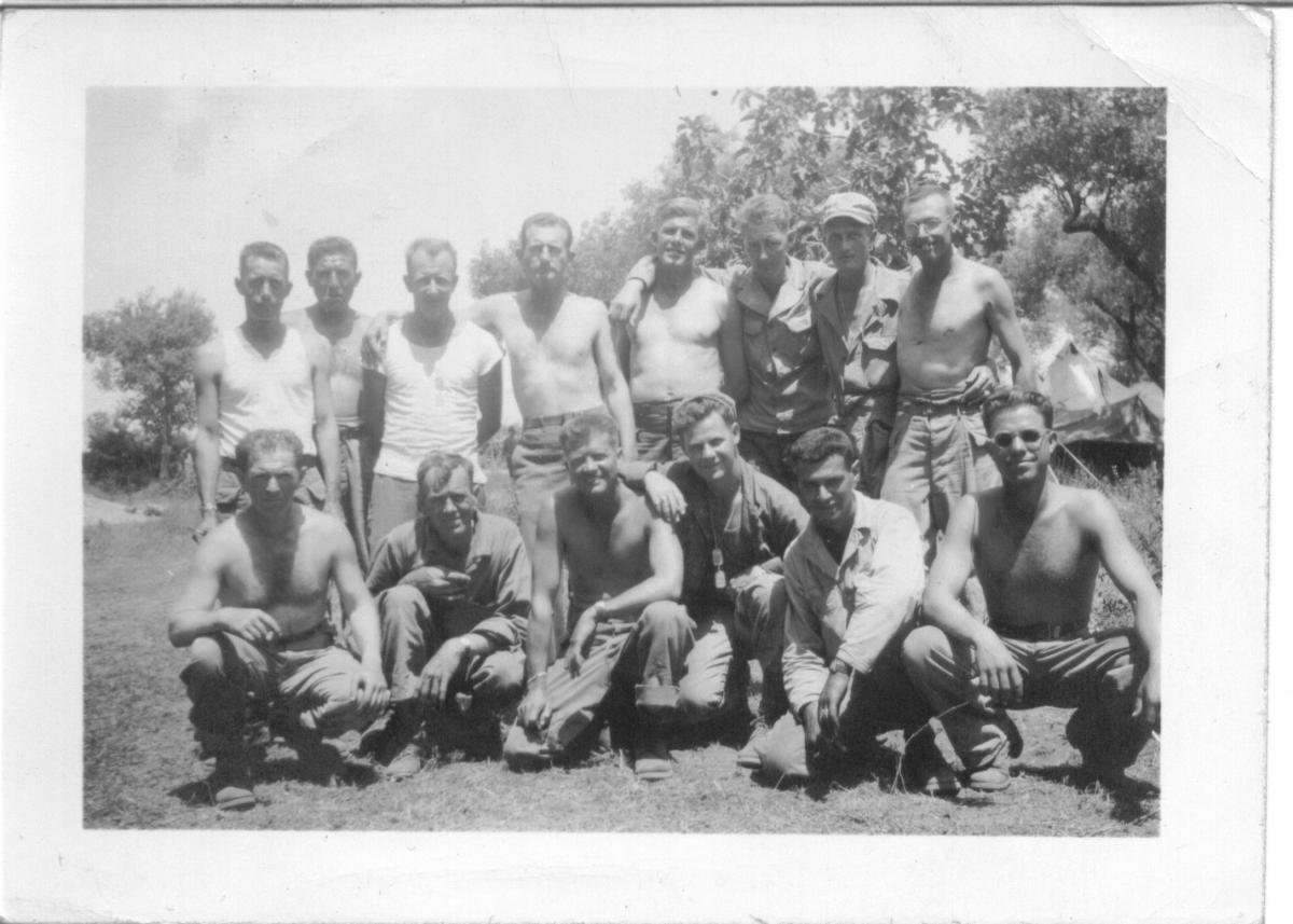 I would like to correspond with anyone who has an interest in the 344th Engineer General Service Regiment during World War II. My dad, Lloyd V. Olson, spent three years overseas as a member of 344th's Company B following his induction at Fort Lewis, WA. My dad died in 1984 but left a scrapbook of photos from his army days, including images of many unidentified soldiers, whom I can only surmise being fellow members of Company B. I'd like to post these images in case anyone can recognize themself or a loved one. Attached are two group shots to start off. In the smaller group, my dad, Lloyd V. Olson, is third from the left in the front row.