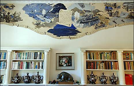 My interest in WW2 comes from the area where I live which is on the south coast of Devon, England just outside of the resort town of Paignton. The whole of this area was deeply involved with the preparations for Operation Overlord and the invasion of Normandy where many of the slipways that were built and used have been preserved to commemorate those who passed over them. The US Navy Command HQ was at Dartmouth Naval College which the Royal Navy had vacated and just a couple of miles up the River Dart from there is Greenway House, the home of Agatha Christie, the famous crime writer. Her home was requisitioned for use by the officers of the US Coast Guard who commanded the LCI(L) of the 10th flotilla. They had previously been the 4th flotilla when involved with the Sicilian and Italian landings in July and September 1943. Whilst billeted at Greenway one of the officers painted a frieze around the walls of the library depicting a story of their exploits since leaving the USA in early 1943. (see photos attached).