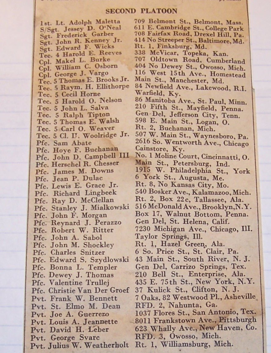 One of the maps has a complete listing of names, ranks and 1945 addresses for the 208th members. Others are detail drawings of various structures they put up along the rivers. We have posted some of the stuff on little discussion group I stood up on Yahoo: http://groups.yahoo.com/group/TheFightingD...ineerBattalion/ . It is member only right now, but click on join and I'll provide access.