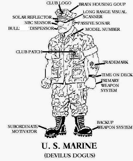 I've been meaning to reply and have been really busy at work lately. Who would have figured? You get a new colonel as a boss and your workload goes way up!! Anyway, I think I have seen this before or at least something like it. Pretty funny. I do want to point out that it should be "Brain Housing Group" on the top. That is actually a fairly common term for head or even for one's mind. As in "You better clear out brain housing group and un* yourself or I will definitely * you up." You can fill in the blanks as you like. As a staff weenie (i.e. one who works on the staff at a high level unit like a Division or higher - and often a term used by the staff weenies themselves), I don't hear a whole lot of language like that here at the 1st Marine Air Wing HQ, however. The term "brain housing group" comes from "bolt housing group" which is the group of parts that holds the bolt on an M-16.