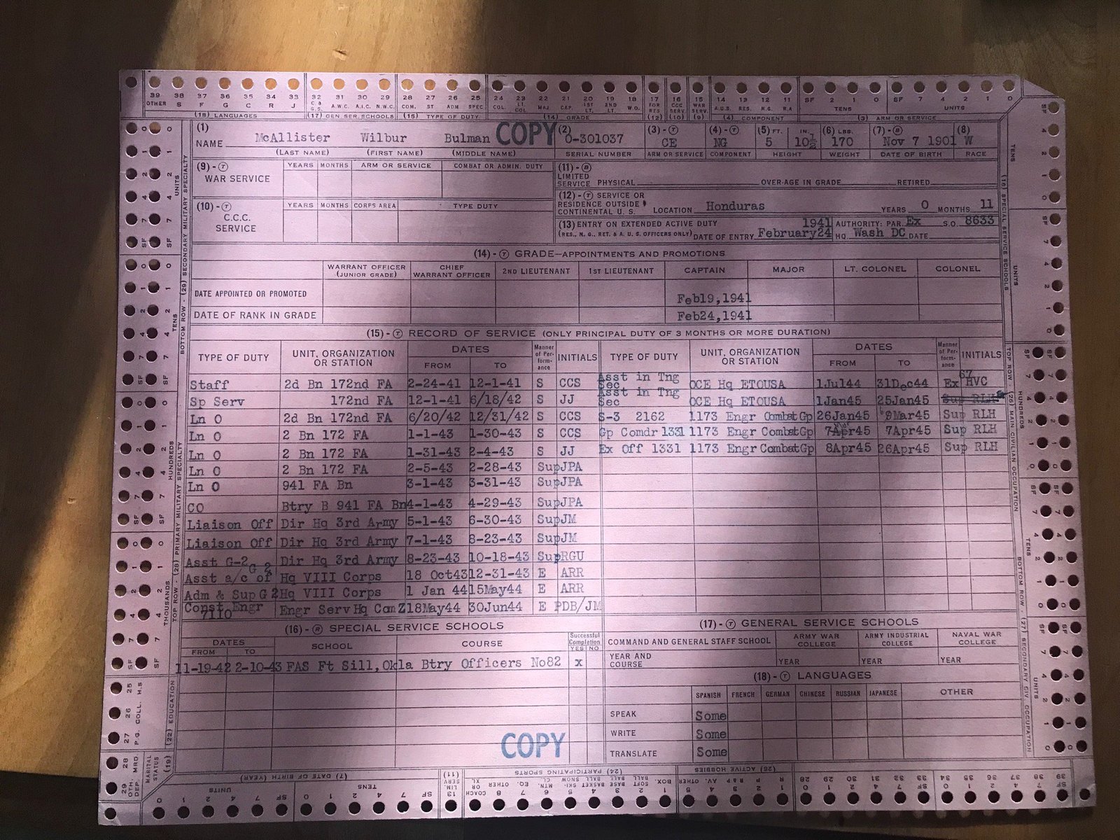 I am also including another record of service document we found.