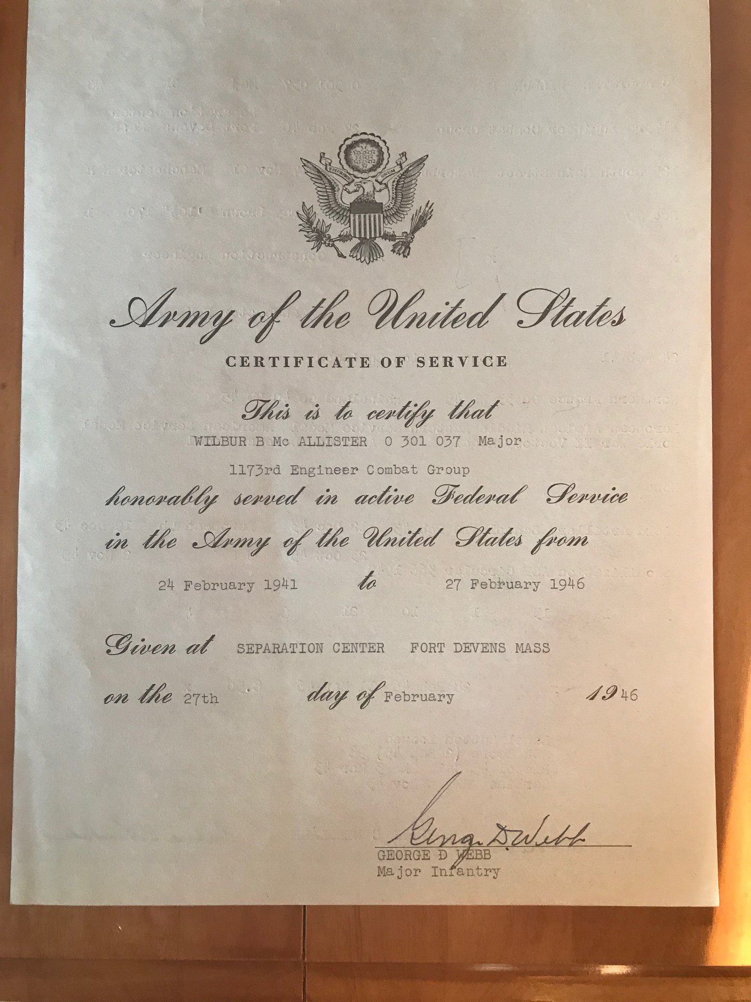 My name is Brendan and I am the great grandson of Wilbur B. McAllister, a combat engineer who served in WW2. Having heard stories of his service from my childhood I have always been interested in knowing more. Unfortunately, I never had the chance to meet my grandfather and what I quickly learned from family is that he never spoke a word about his service and would typically leave the room if such conversation came up. This left a large blank space as to his experience in WW2. My goal from the start has been to uncover more about his service, primarily to share with my grandfather so he can finally know what his dad did in the war.
