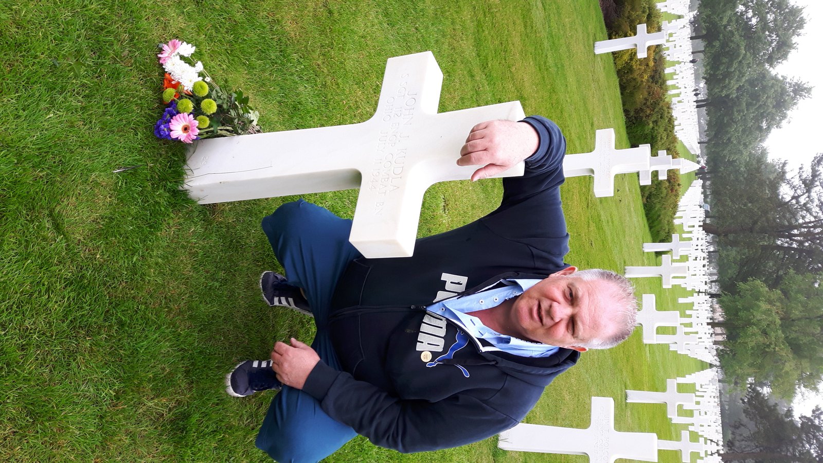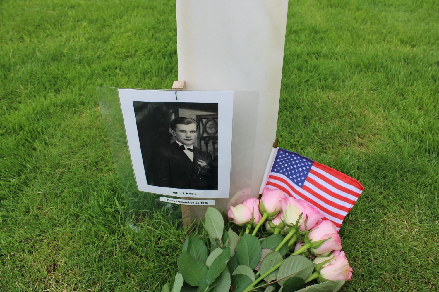 On june 7th 2019 we visited the grave of John J. Kudla again to leave a picture of him at his grave. We paid our respects and left an American flag and flowers too. As promised. He is not forgotten.