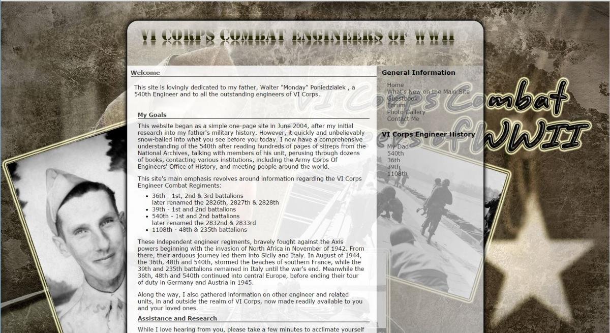 About a year or so ago, I revamped the VI Corps Jukebox. Well I'm now working on a total revamp of our main site. It's a huge project, but it will be well worth it. Not only will it be a new look, but it will also give me a chance to reorganize/restructure.
