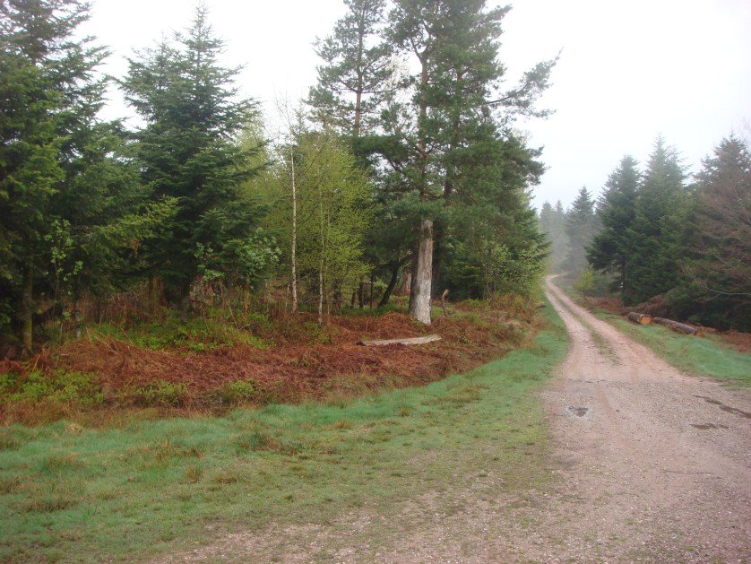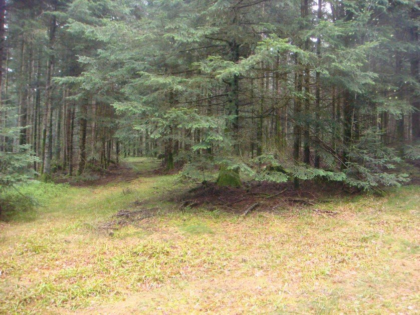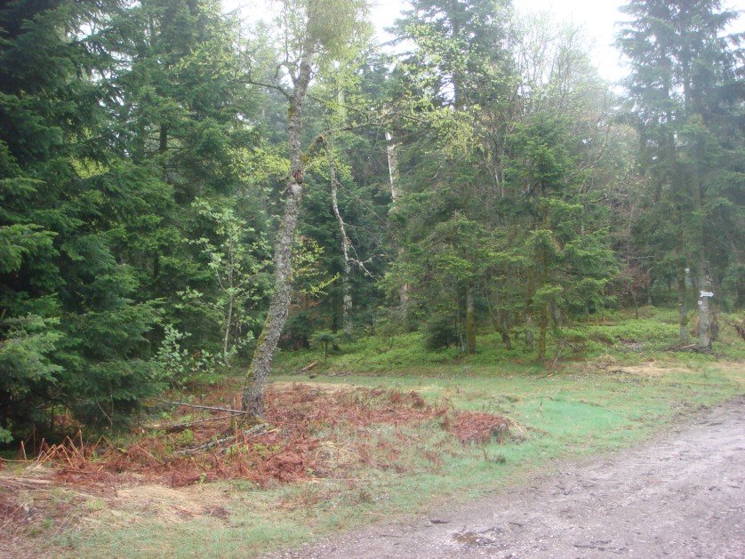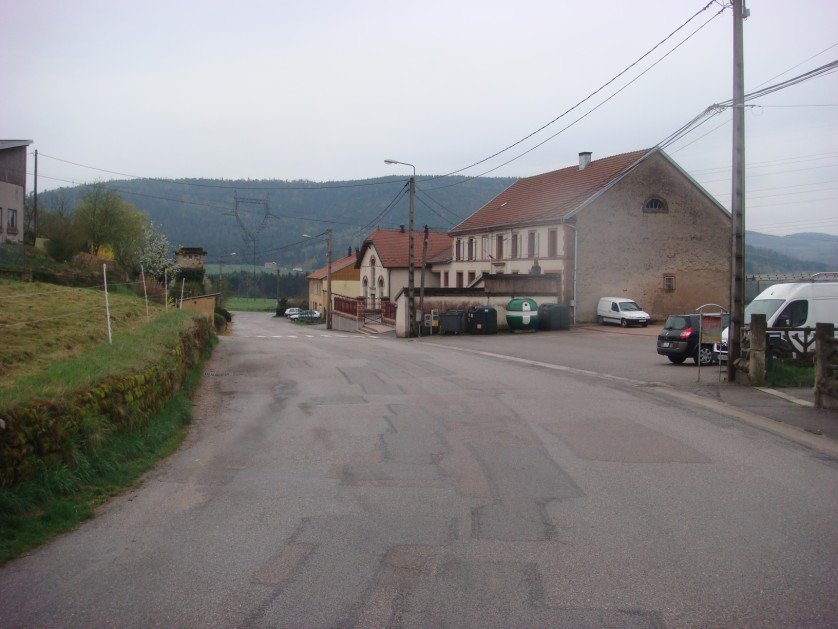 On the 26th of October, Colonel Pence was directed to relieve the 3rd Btl, 141st Infantry, with one Battalion, 442nd Infantry, and elected to send the 2nd into the line. The relief was effected at 0300 hours on October 26 on the extreme left of the division sector. The following day, however, the entire Combat Team was ordered into the line in an effort to relieve pressure on the 1st Btl, 141st Infantry. In a push down the long heavily-wooded ridge that extended southeast and dominated the valley from Biffontaine to La Houssiere, the 1st Btl had overextended itself and had been cut off by strong enemy forces. The photo shows the place where the first German roadblock was set.