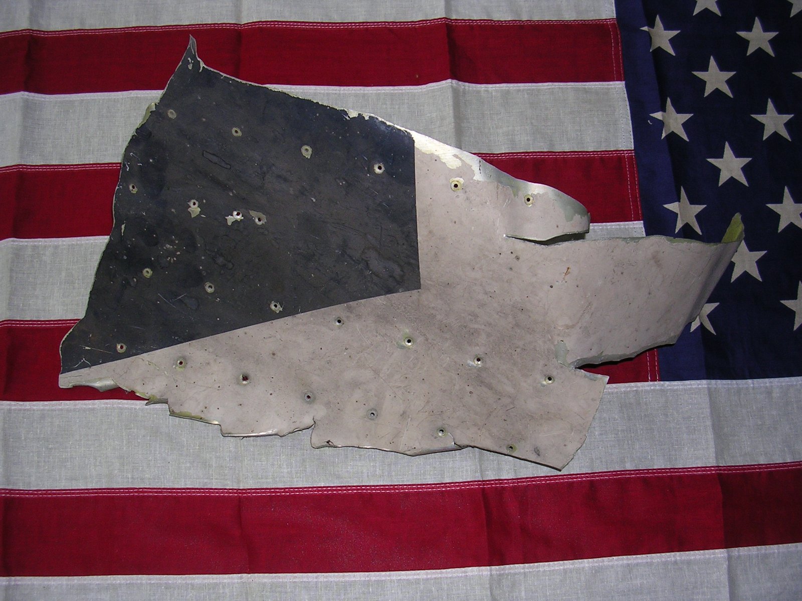 He even took a piece of the fuselage that he ripped of from the side of the plane, just where the white star was painted.
