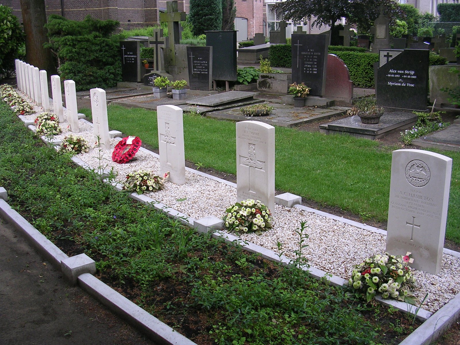 The fore occupants of the Jeep carrying Waco glider ‘Queen-City’ are also buried here.