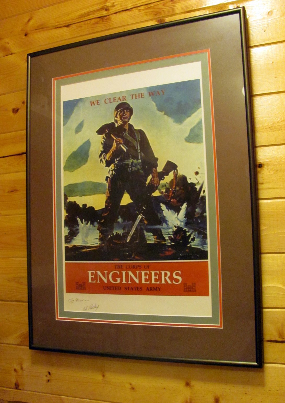A couple of years ago, Captain John Fallon - 36th Engineer - gave me a beautiful seahorse and today I gave it a permanent place of honor in our bar in our new man cave! Along with that seahorse, now hangs the engineer poster of Vincent Leckey, who signed it for me before he passed away a few years back.