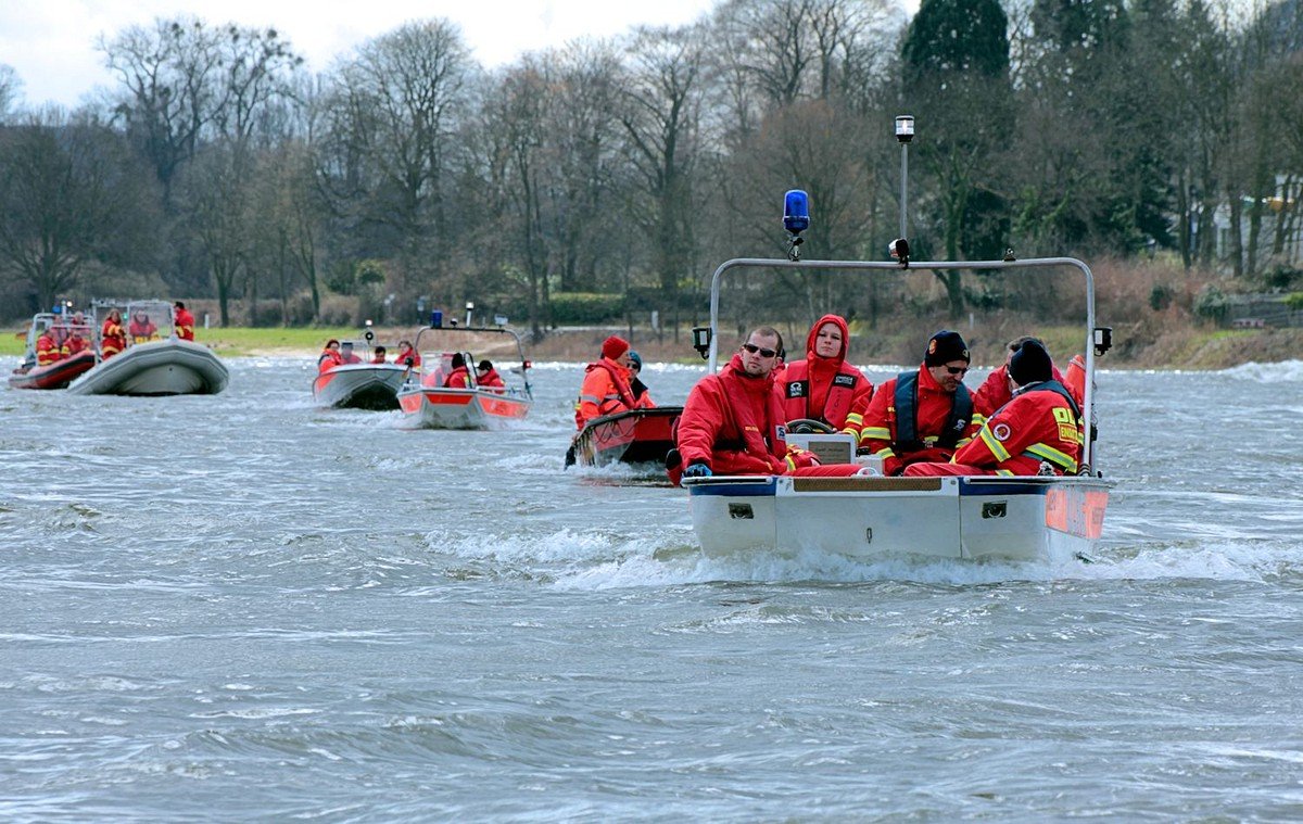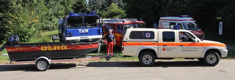 For several reasons it's getting more and more difficult to find enough lifesavers in each of the three mentioned organisations, so we tried for the first time mixed crews on different boats - rubber dinghies, IRBs, flood boats, emergency boats and a working boat and also for mixed teams of divers. It was the hottest day of last summer, but on the Rhine it was fine ![]()