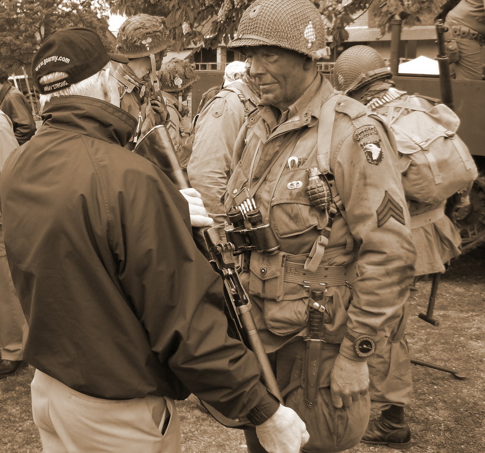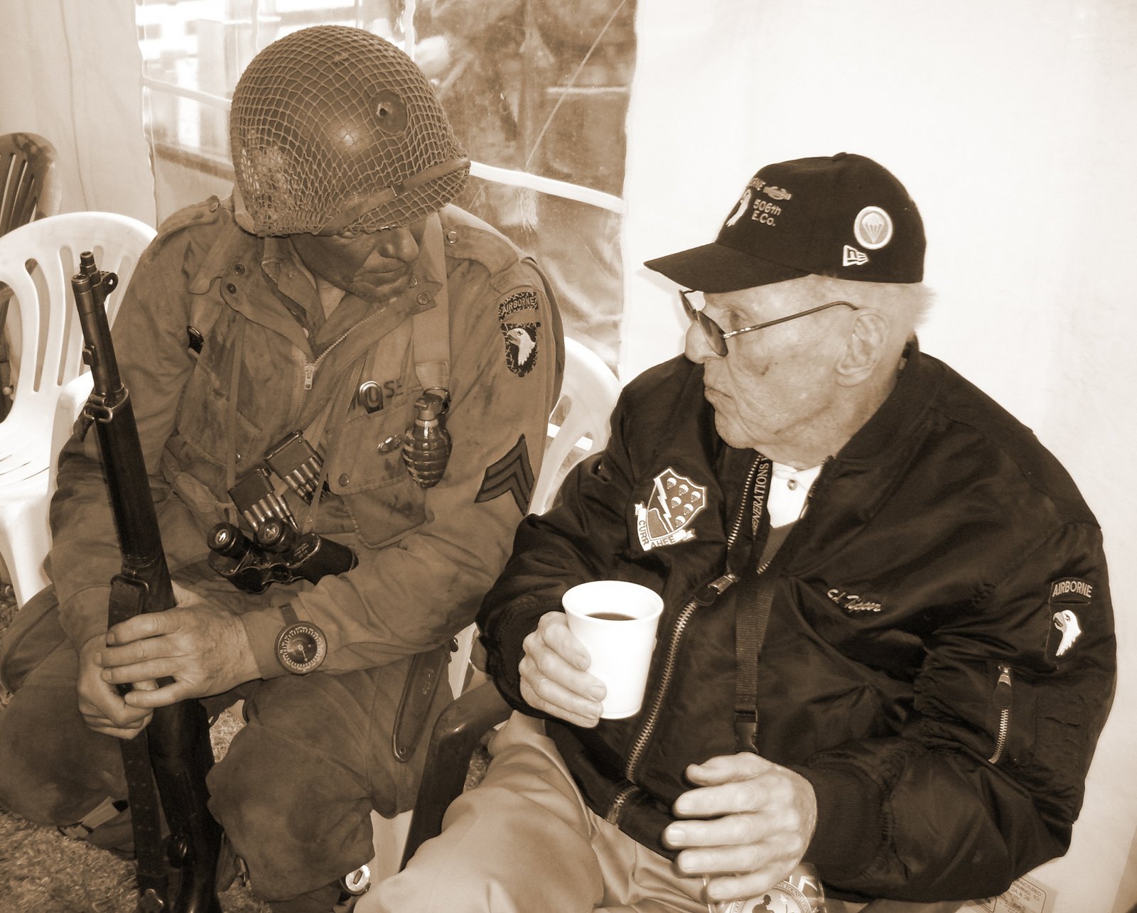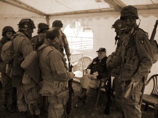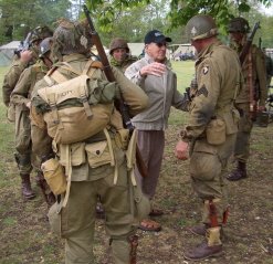 The 1st photo shows the Veterans joining in with SEHLG singing the cadance ' Jody', which we sing ( and sang by the 506th P.I.R. ) when marching . IF you can enlarge this photo take a look at the expressions on the faces of 506th troopers Ed Tipper and Jim Beam ( both 506th D-Day Veterans ). The years have rolled away. Ed is 2nd from the right and JIM is 6th from the right.