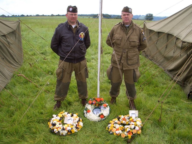 THE WREATHS LEFT TO RIGHT.. OFFICERS AND MEN OF ABLE COMPANY, 1st BATTALION, 506th P.I.R. 101st AIRBORNE, UNITED STATES ARMY.