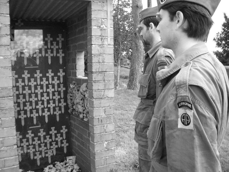 CPL. SIMON GRANNY KNOTT LAYS THE WREATH FOR ABLE COMPANY, 1st BATTALION, 506th P.I.R. 101st AIRBORNE.