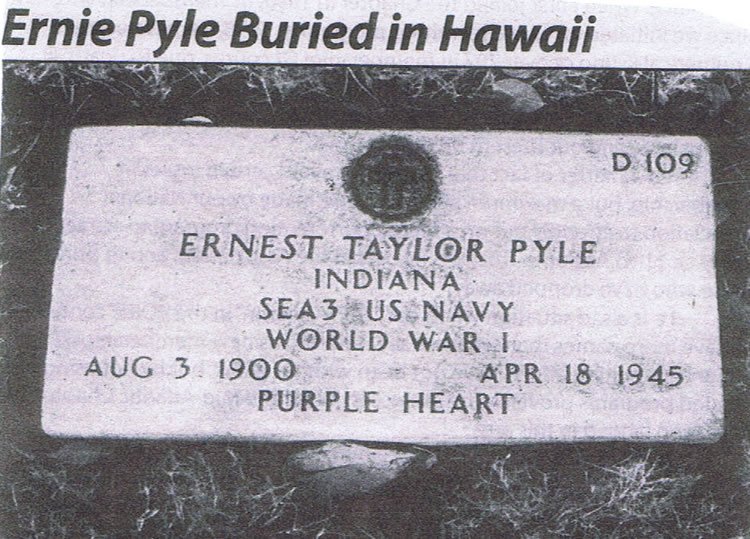 Ernie was a native of Indiana and his papers are archived at the Indiana University School of Journalism-- http://www.journalism.indiana.edu/news/erniepyle/ .