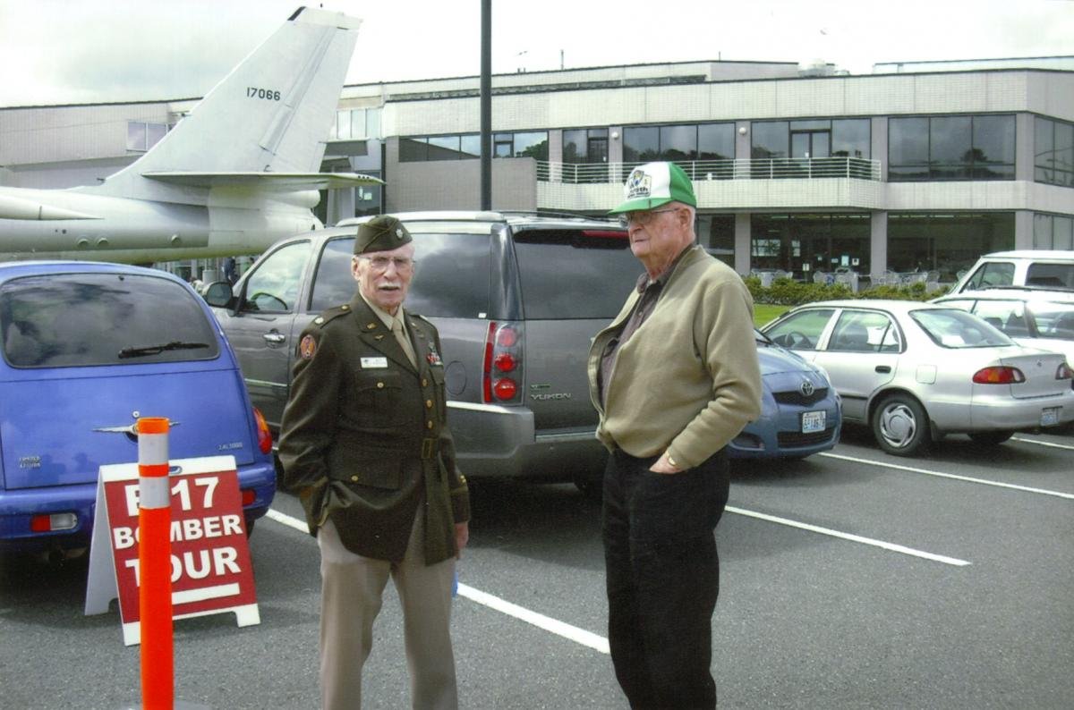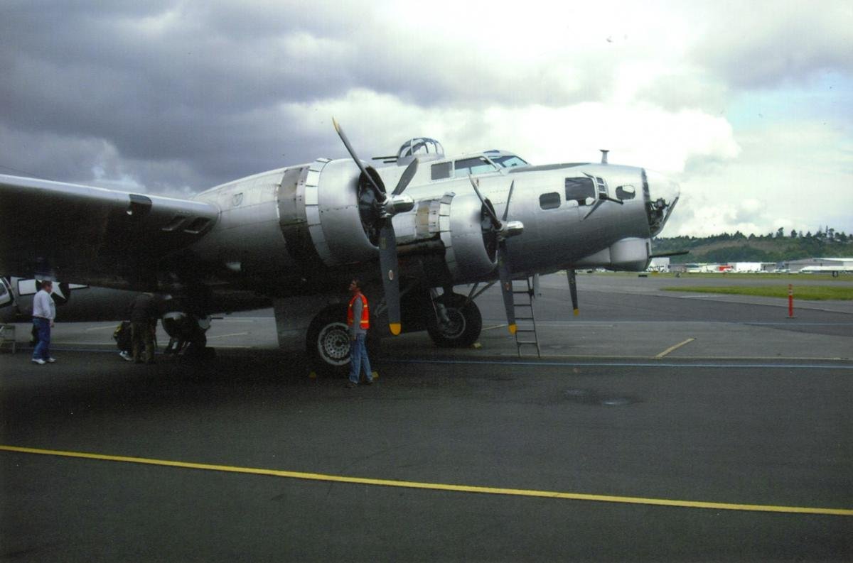 I am back from one very memorable experience. We were the fist two passengers that showed up at Boeing field which allowed my buddy and I to listen to the two WWII B17 members who were there to share their stories. The taller man is Eldon Lawson of the 305th Heavy Bombardment Squadron, US 8th Army Airforce stationed in England. He was a B-17 Pilot with 30 missions. The shorter man is Lt. Col. Kenneth Wheeler, 353rd Bomb Squadron, 301rst Bomber Group, 5th Wing, 15th USAAF- Italy. His B-17 was shot down over Croatia and he had to bail out. His chute got hung up in a tree, but eventually another member of the crew came along and helped him down. They were rescued by Tito Partisans. Ken was an "evadee" (as he called it) for 36 days before being returned to Italy. He was a Navigator and flew 35 missions in WWII. He retired as a Lt. Col. after 28 years of service. He had some great stories!