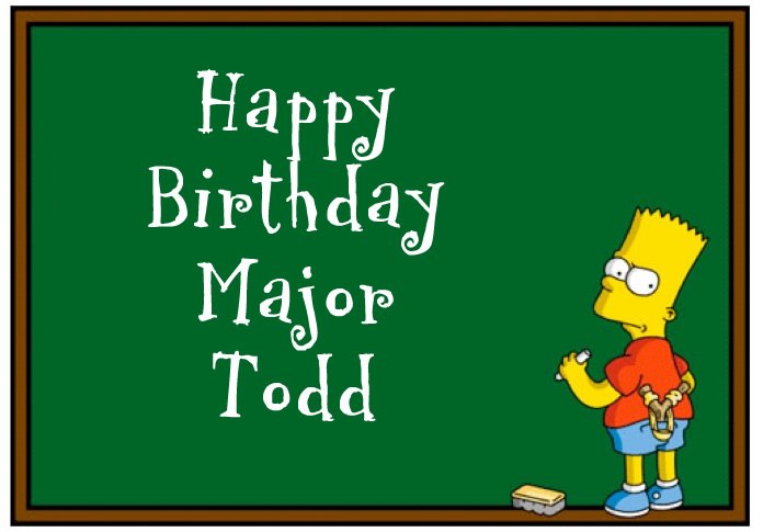Best wishes to you Todd, I hope is all going well with your move. We will miss having you with us in September but you will be in our thoughts over that weekend.