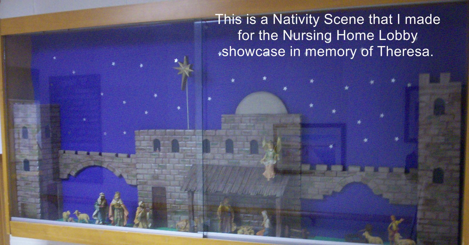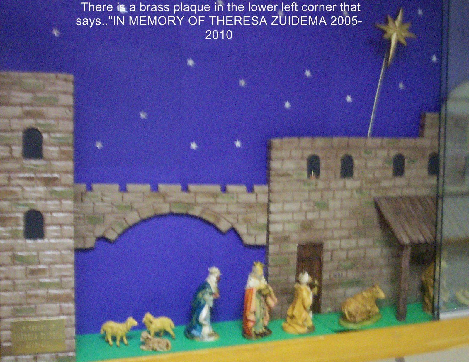 Dear Marion.....First of all, let me wish you and yours a VERY MERRY CHRISTMAS AND A HAPPY NEW YEAR. May it bring you much Joy, Happiness and Peace. I feel that I know you personally...I have listened to your wonderful WW11 music for a long time...in fact, I am listening now. I just watched your "Christmas Greetings 2010". It was wonderful and I greatly appreciate it. We are "going" fast and as one of the youngest Combat Vets...at 85, we won't last very much longer. These pictures are of the Creche I made for the showcase in the nursing home my wife Theresa was in for the last 5 years. She died Aug.31...after 64 good years a marriage. Making Creches is one of my most important hobbies. I have made 250...so far. I have them in 3 local churches. After all these years together...we were in the hospital together when we were born...Jan 28, 1926 for Theresa and Feb 2, 1926 for me and then we went all through St; Mary's school together. We were only "apart" for the 2 years I was in the army. Now I still go to the nursing home to play the piano as a volunteer. God bless you, Marion. You are doing a wonderful thing. Merry Christmas...JIM Zuidema. Muskegon, Mi.