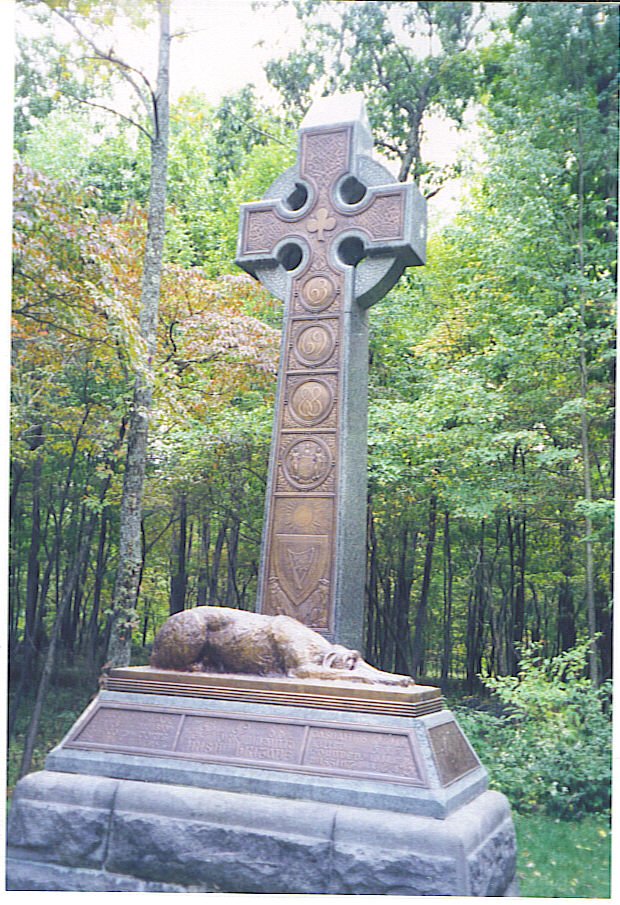 The Irish Brigade Monument. The unit was made up primarily of Irish Immigrants from the State of New York. The dog is a representation of a breed of Irish Wolfhound that is extinct. They were bigger (?!!) than the Irish Wolfhounds that we have today. The sculptor Rudolph O'Donavan was a former Confederate Soldier who when asked to take the commission said "For my Irish Boys I will"