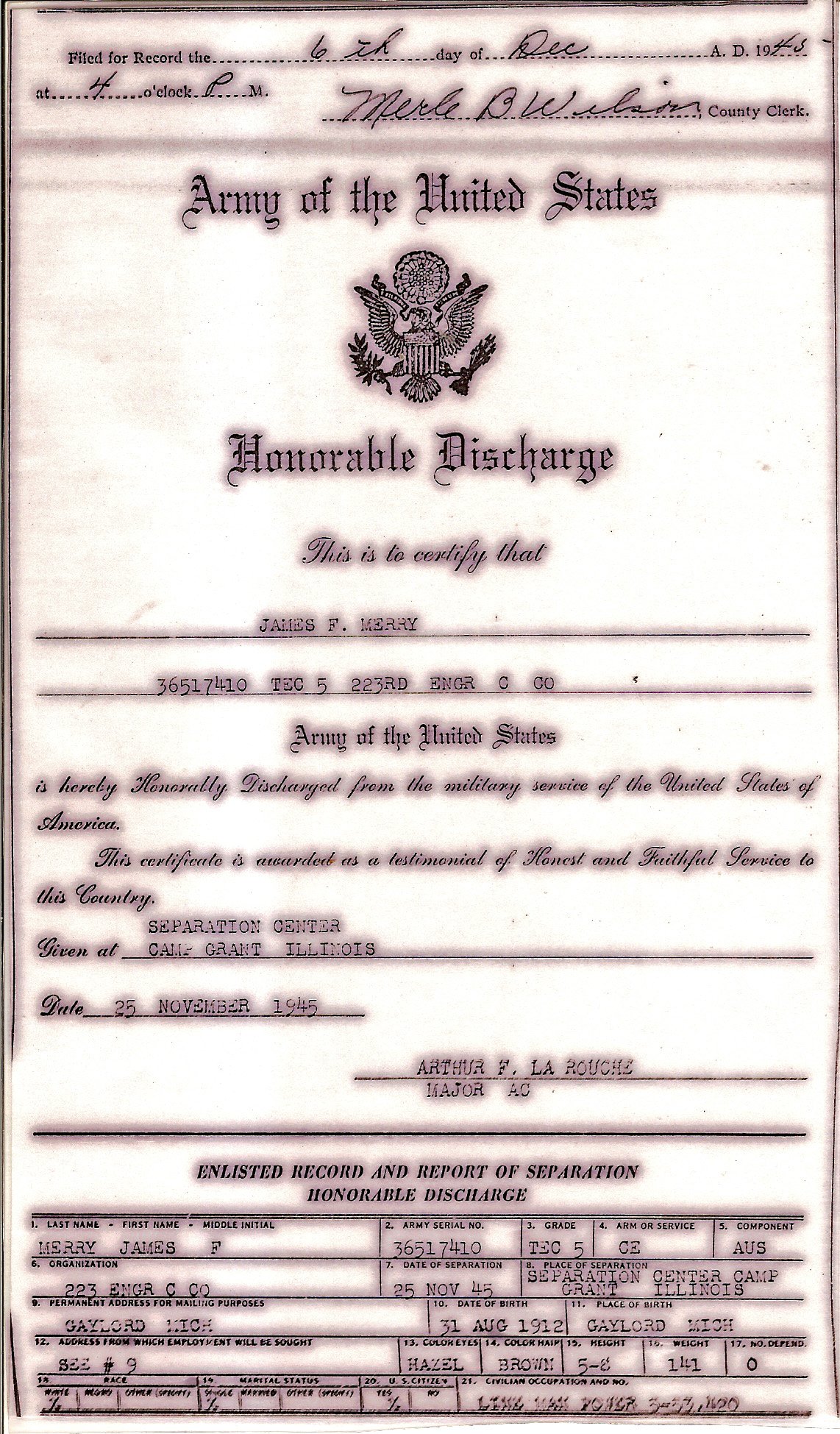 As for the Report of Separation, there is about 30 more boxes of information on it. The parts your missing contain enlistment information, awards & decorations, campaign participation, dates of travel outside continental US, etc. I suggest you contact the County Clerks office & see if they can provide the whole page, they should have it.