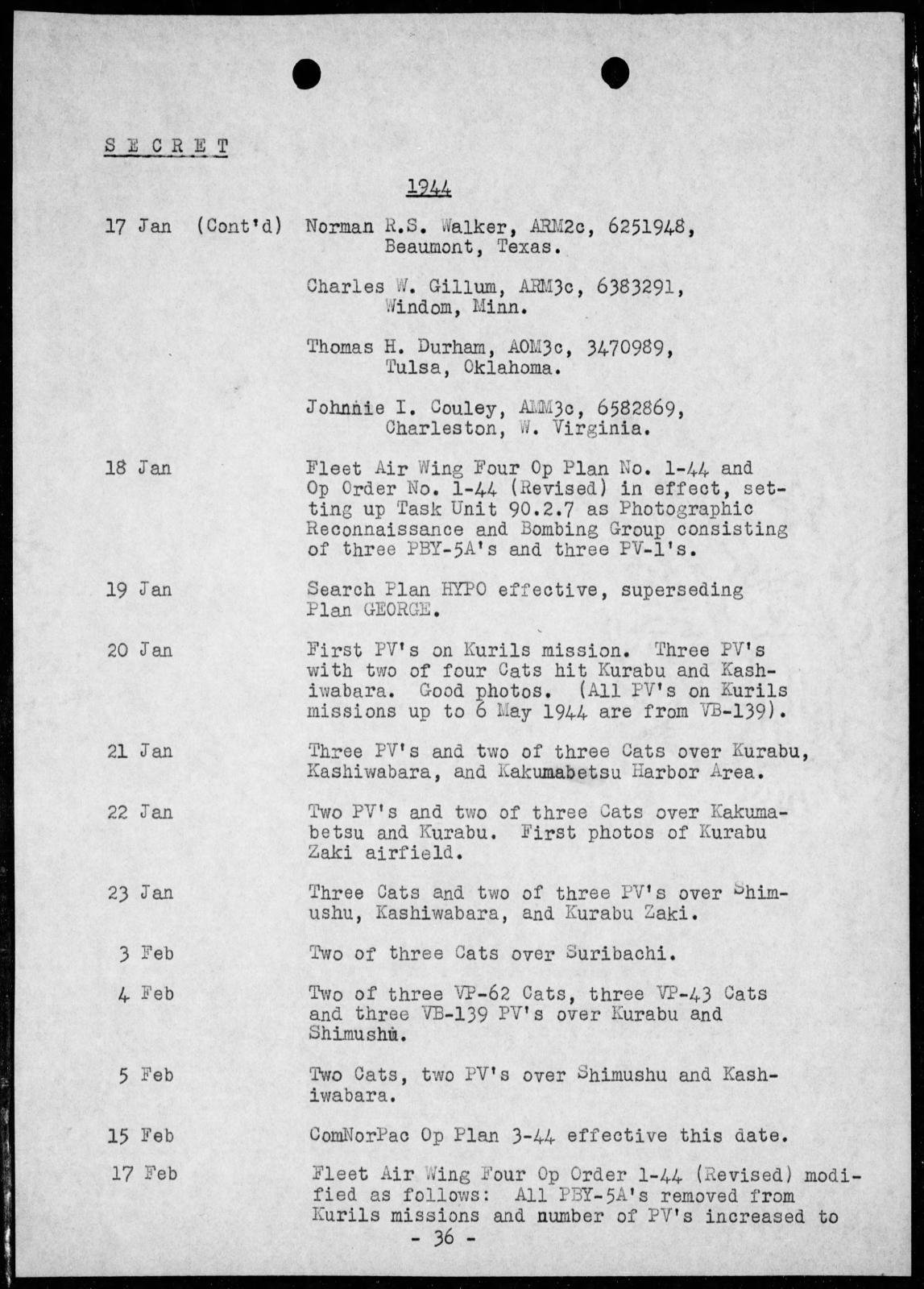 DURHAM, THOMAS H , 3470989, USN, AOM3, 01/17/1944