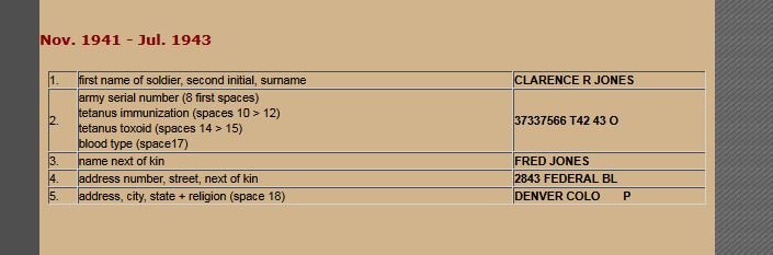 For instance, you can tell when my dad was inducted from the type of dog-tags he received. He still had his after the war. He served from 1943 to Nov 1945. Never a re-issue.