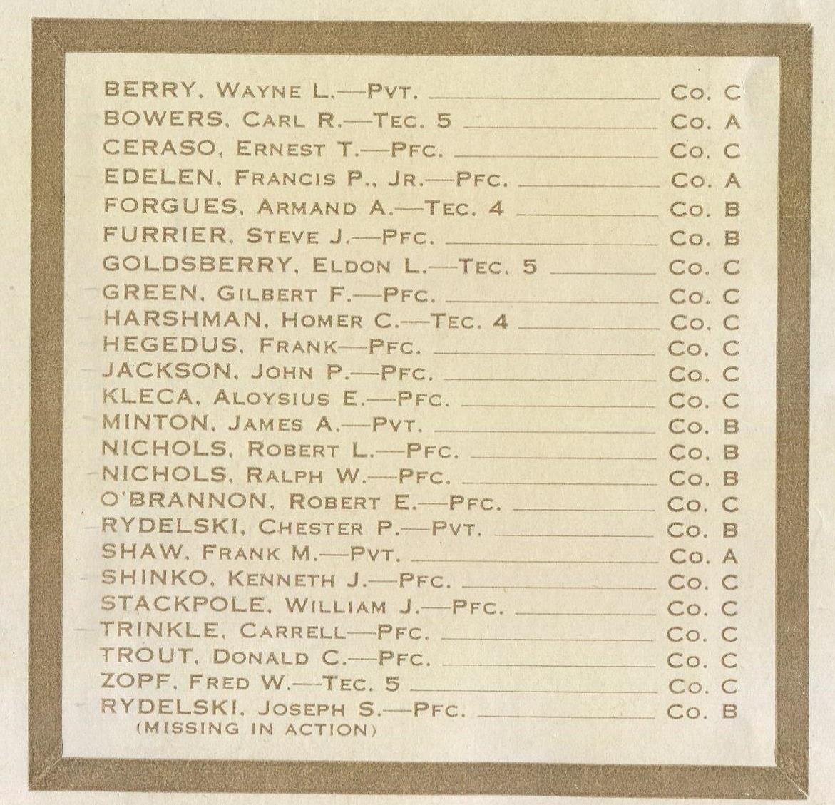 I didn't see a way to get a hold of Wayne. If you would be kind enough to let him know, I have a Xerox copy of the 160th Engineer Combat Unit book I'll give to him. His uncle's name appears as one of the twenty three men the book was dedicated to.