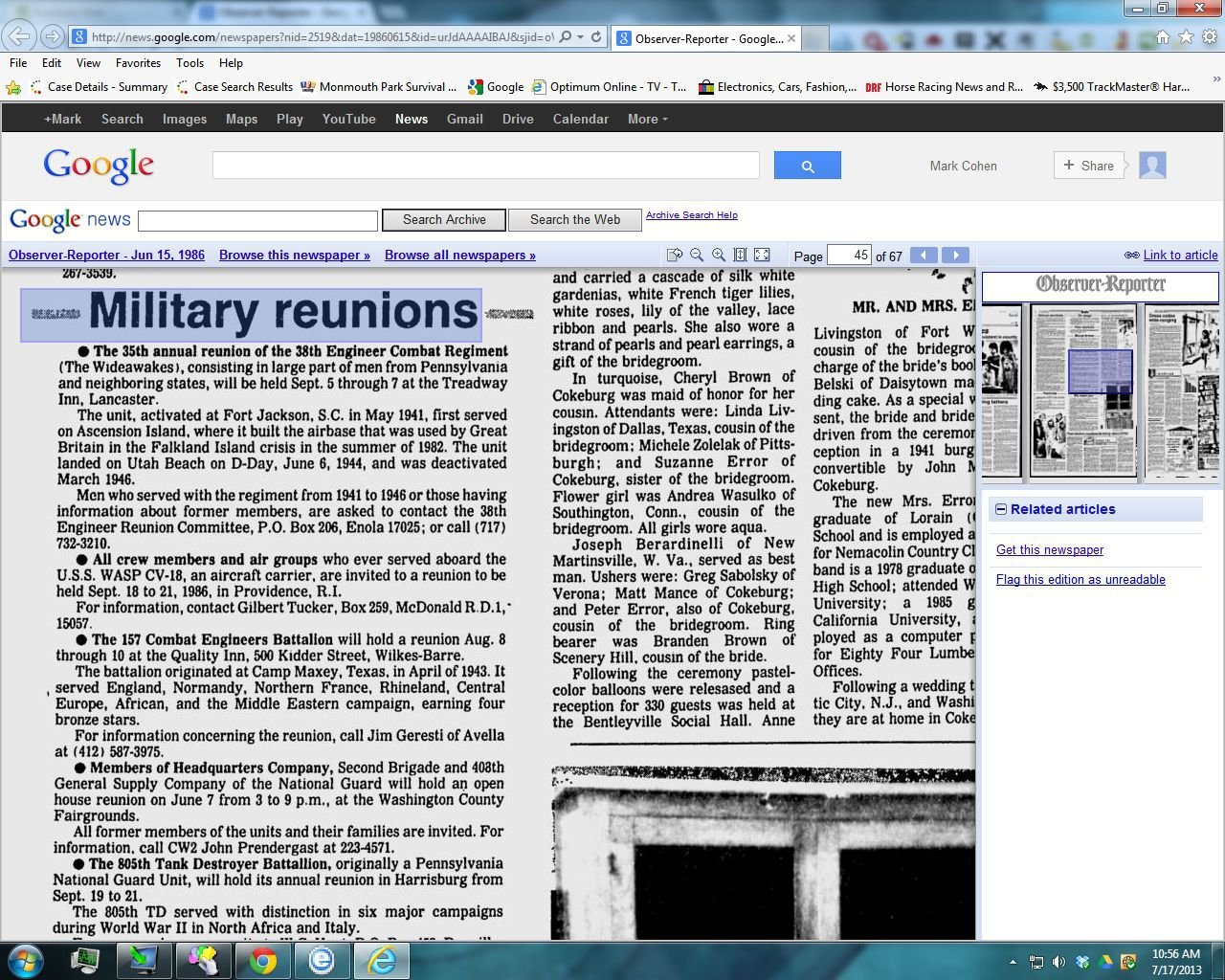 If you want I will post all the links I have about the 38th. If Marion gives her nod of approval I would like to share all the great photos she has on here posted on here and hope for a larger audience on Pinterest.