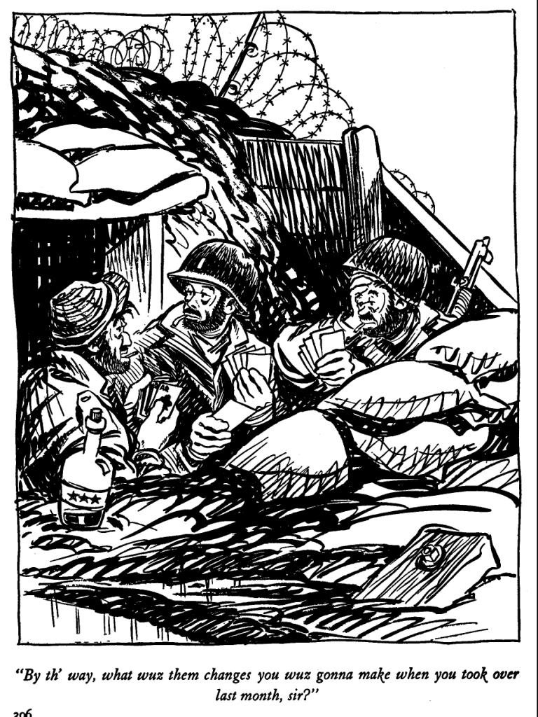In 1945, he won a Pulitzer Prize “for distinguished service as a cartoonist” and the Allied high command awarded him its Legion of Merit. His illustrated memoir, Up Front, was a bestseller. That same year, his “dogface” Willie appeared on the cover of Time.