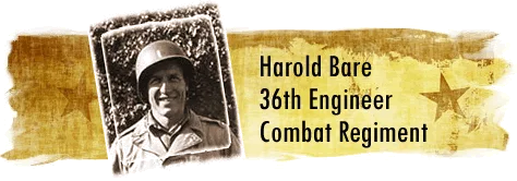 My dear friend John Fallon, also of the 36th Combat Engineers, introduced me to Harold Bare. Just today I received a very nice letter from Harold along with a personal story and a couple of photographs. Later, I was able to meet him in person at several of the 36th’s reunions.