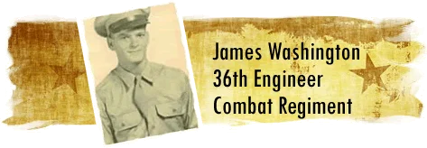 While conducting my never-ending search on 36th Combat Engineers and clicking on links listed in Google and Yahoo, I came across a genealogy site dedicated to the direct descendants of George Washington. Now you are probably thinking, what does this have to do with the 36th? Well, it so happens that there was a photo on the page saying that this was James B Washington and that he was a 36th Combat Engineer. Ah-ha! So I logged onto their message board and said that I would be most interested in posting his info on our site.