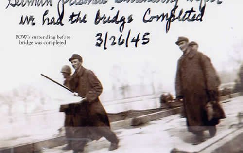 German prisoners of war surrendering before the bridge was completed, 03-26-1945.