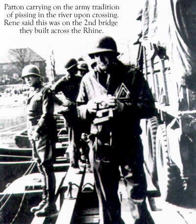 Patton pissing in the Rhine River. This took place on the 2nd bridge that the 540th had built across the Rhine in March of 1945.