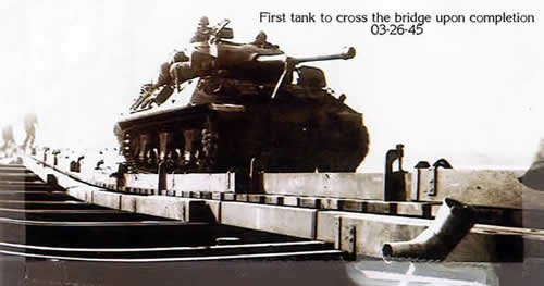 This is a photo he took of the first tank crossing the bridge upon completion on 03-26-1945.