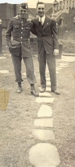 Photo right: Best friend, paratrooper Fred Coons and Art Morneweck in 1942. Fred was wounded at Normandy on DDay and spent months in recovery at Battle Creek Hospital in Michigan.